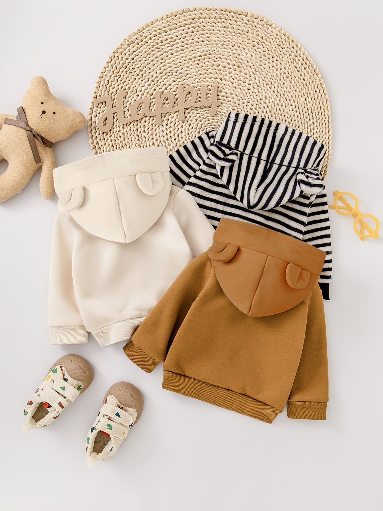 Deze set van drie hoodies combineert comfort met een schattig design. Elke trui heeft een zachte stof die warm en cozy aanvoelt, perfect voor herfst en winter. Het teddy beer-badge detail geeft een speelse uitstraling, terwijl de mix van effen kleuren en strepen zorgt voor variatie in elke outfit. Ideaal voor dagelijks gebruik, familie-uitjes of gewoon knuffelen thuis. Een complete en stijlvolle set die zowel praktisch als schattig is.
