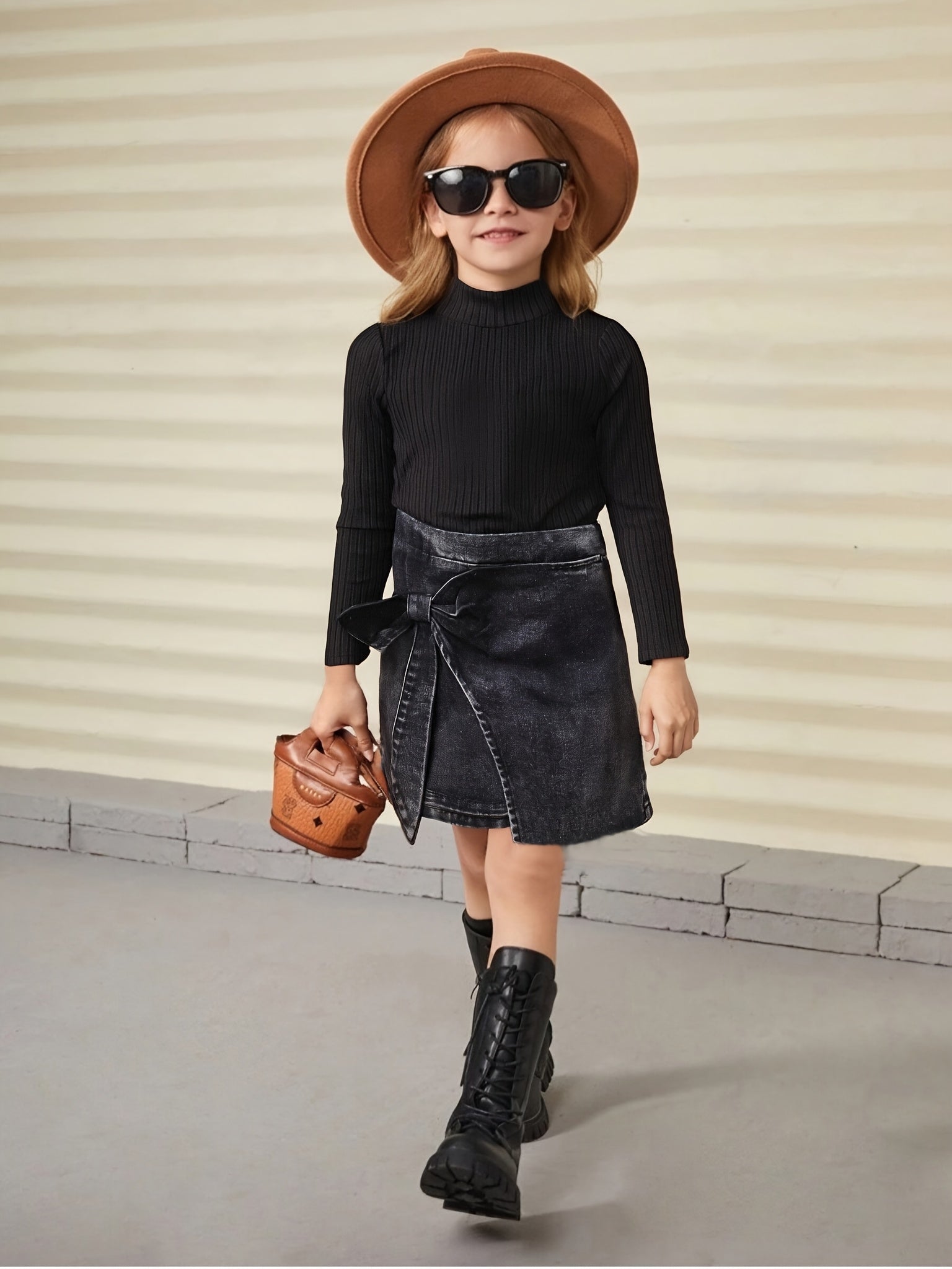 Deze stijlvolle meisjes set bestaat uit een zwarte coltrui met lange mouwen en een denim look rok die is afgewerkt met een speelse strik. De combinatie zorgt voor een elegante maar toch comfortabele outfit die ideaal is voor school, feestjes of speciale gelegenheden. Dankzij de zachte stof voelt het heerlijk aan en kan je kind zich vrij bewegen terwijl ze er chic uitziet. Een outfit die klasse en gemak perfect combineert.
