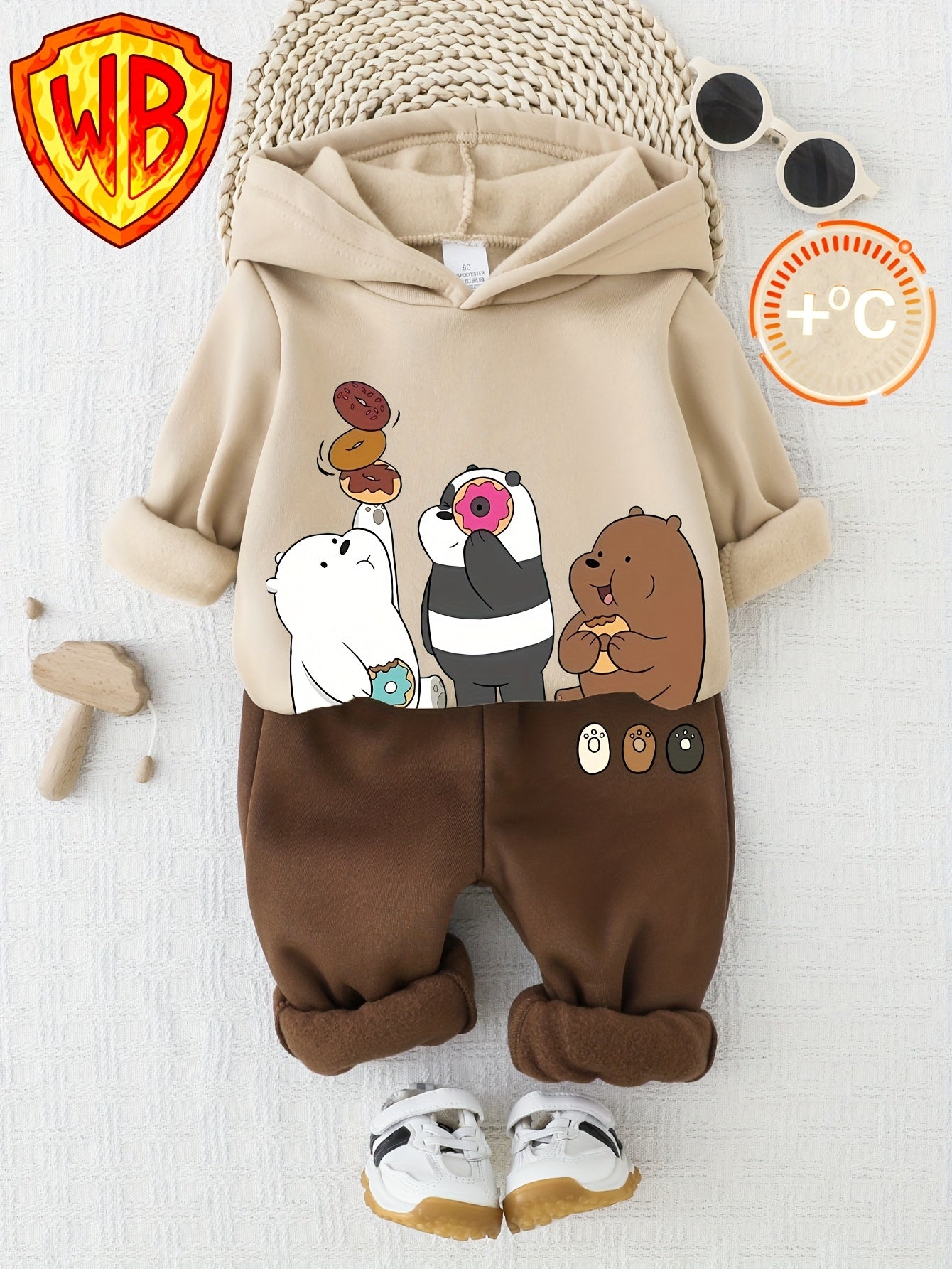 Deze set bestaat uit een zachte hoodie met een cartoonprint en een comfortabele broek die perfect zit voor de allerkleinsten. De warme stof maakt dit setje ideaal voor herfst en winter, of het nu gaat om thuis spelen of een dagje buiten. Met zijn speelse design en vrolijke kleuren wordt dit al snel de favoriete outfit van je kindje.